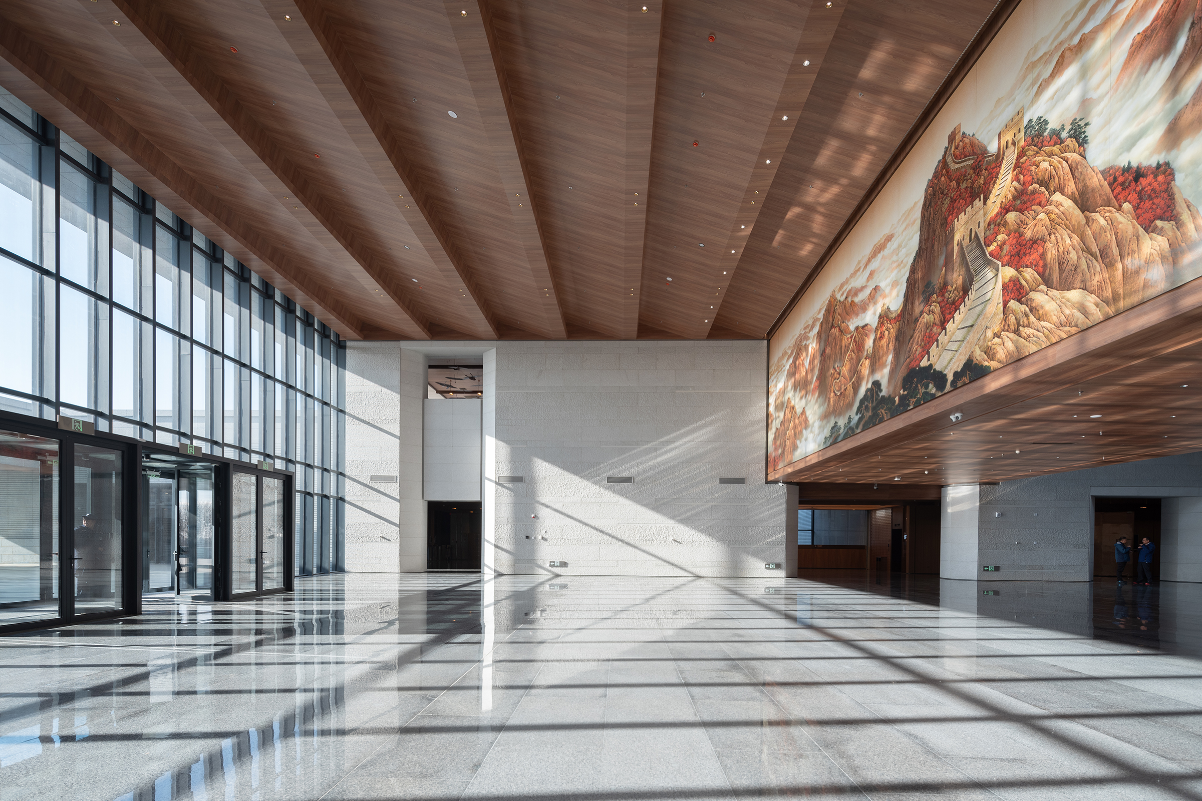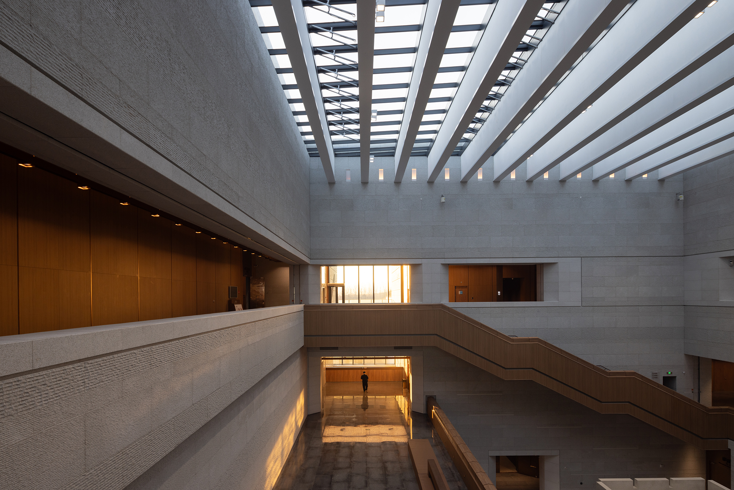 This project is a contemporary cultural landmark that offers a comprehensive interpretation of the Great Wall's history, military systems, and engineering legacy. Designed to harmonize with its historic surroundings, the architecture adopts a restrained palette of grey stone and wood, integrating seamlessly with the mountainous and coastal terrain. The spatial form draws inspiration from the Great Wall itself, using abstracted elements such as battlements, arrow slits, and watchtower motifs to guide a visitor's journey through layers of solid and void. Interior spaces are organized around the concept of a walled city, with strong geometric volumes contrasted by warm timber finishes to evoke a balance of strength and intimacy. Passive design strategies such as courtyards and skylights reduce energy use, while renewable systems—including a ground-source heat pump and rooftop solar panels—contribute to the building's net-zero energy performance. This project exemplifies how contemporary design can respectfully reinterpret cultural heritage through architectural innovation and environmental responsibility.