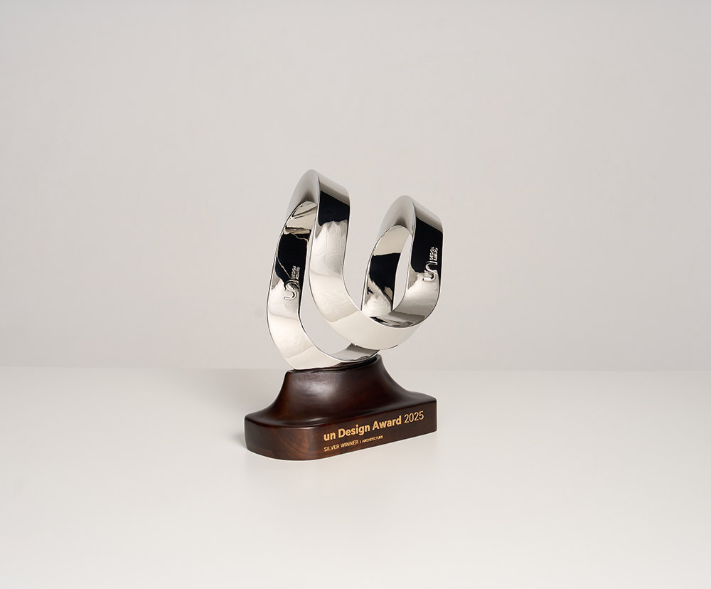 Crafted as a perfect fusion of sustainable practices and exquisite craftsmanship, the trophy features a base meticulously carved from North American walnut, where natural texture interweaves with a warm finish, complemented by sleek and clean lines that embody a visual expression of simplicity and profound beauty. Its top is made from custom aluminum alloy through meticulous polishing, subtly incorporating the letterforms "u" and "n"—a design that not only embeds the brand's symbolic meaning but also resonates deeply with the award's essence, delivering a strong visual impact while demonstrating an unwavering commitment to environmental stewardship.